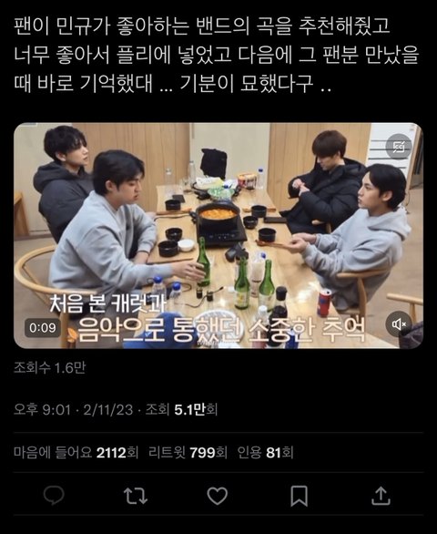 팬이 추천해준 노래 제목을 다 기억해서 들어봤대