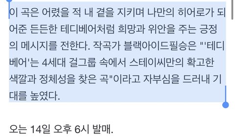 테디베어는 14일 화요일 6시에 전 음원사이트에 발매되니까