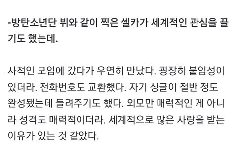 배우 이정재님 인터뷰중 태형이랑 찍은 셀카 언급부분