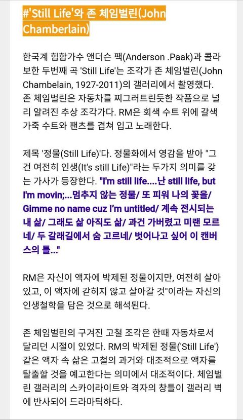 남주니 뉴욕라이브에서 나온 작품들을 설명해주고 노래랑 연관해 해석한 글같아