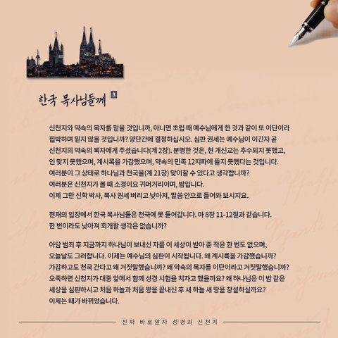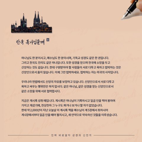 한국 목사님들께 써주신 편지를 읽어보시고,