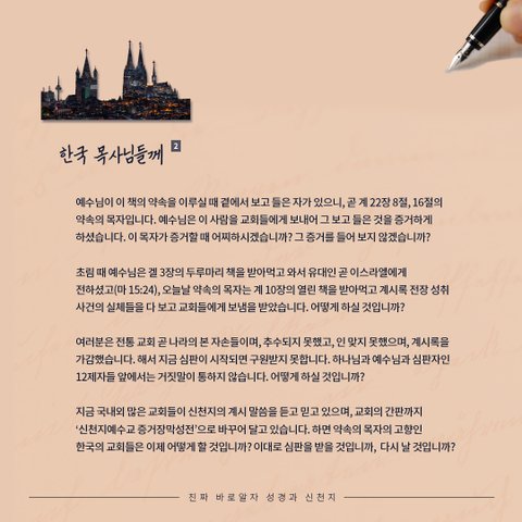 신약의 약속의 목자께서 한국 목사님들께 써주신 편지를 전하고자 합니다^^