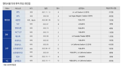 방탄 다음 미국 투어 규모 2위인 케이팝 그룹 투어가
