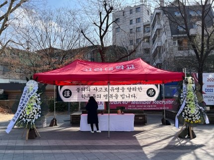 고려대 총학생회 측은 이날부터 지난 12일 교통사고 화재로 숨진 고려대 스키동아리 학생 5명을 추모하기 위한 교내 분향소 2곳을 마련했다.