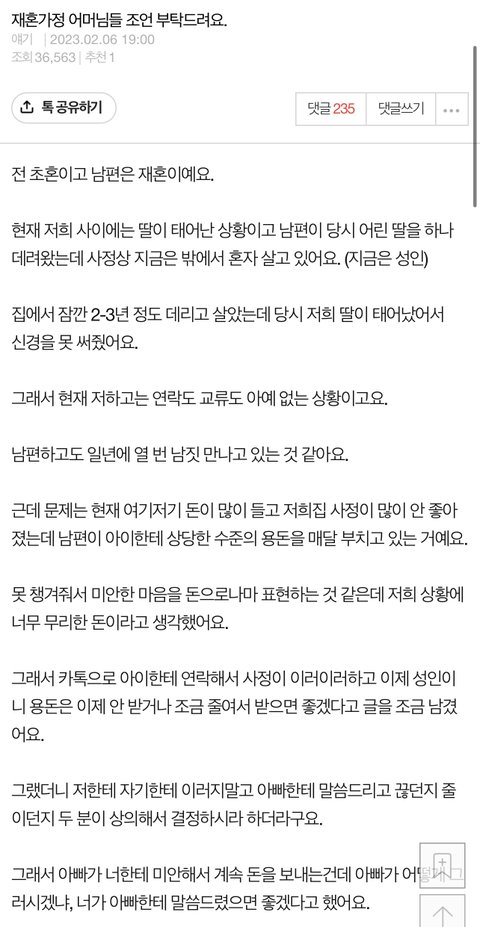 이 친구는 모르지만 저도 재혼가정에서 자랐는지라..