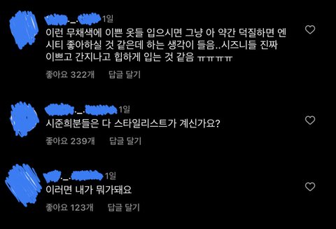 엔시티랑 관련된 인스타 게시물 봣는데 댓글 키자마자 본 아이디들이 다