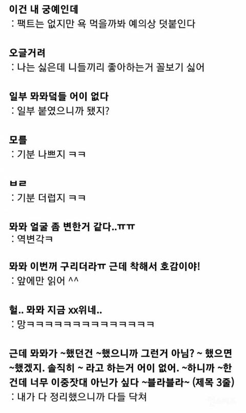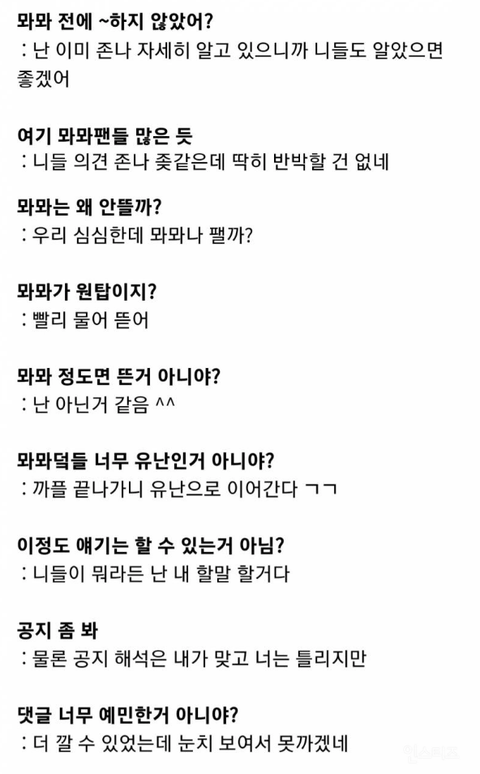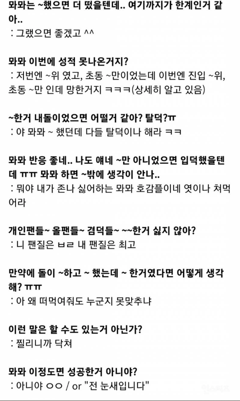 여기 ~팬들 많은듯 이 말 개빡침 ㅅㅂ ㅋㅋㅋㅋㅋ