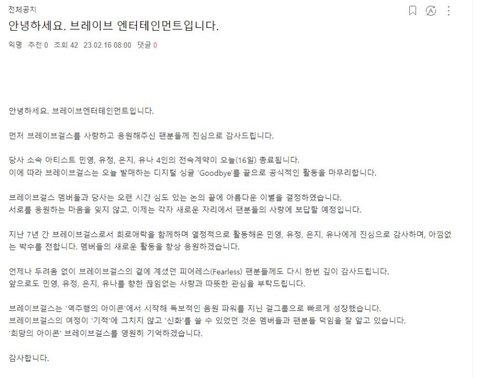 브레이브걸스 해체, 오늘은 마지막 곡 ‘Goodbye’