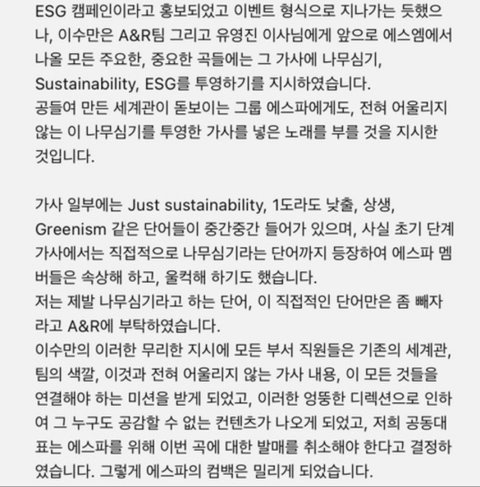 이성수 성명문인데……….그니까 지금 저딴 이유 때문에 컴백이 밀렸다고? 이수만씨..