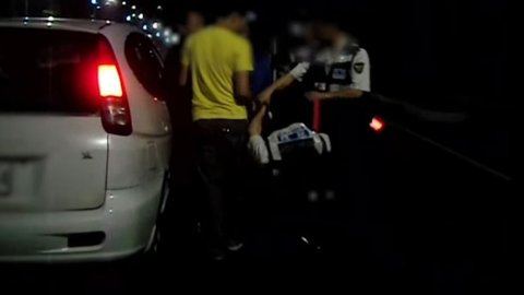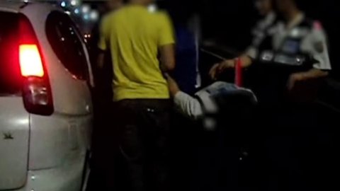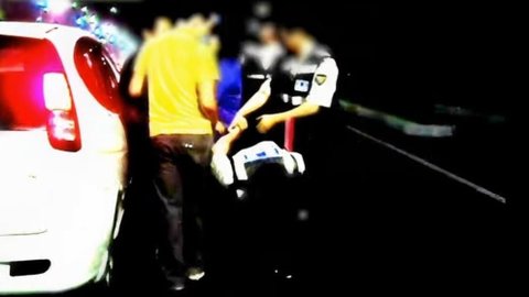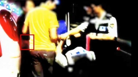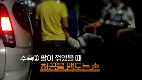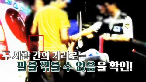 차에서 내려서 실랑이를 하는 도중 한 경찰이 비명을 지르며 팔을 뒤로 꺾음