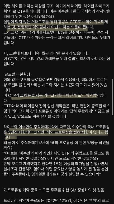이수만 뒷돈 비리 투자사업 하이브랑 열심히 딜 한 듯