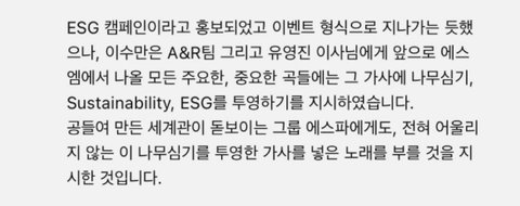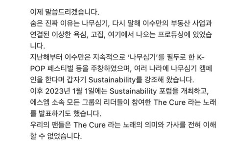 스엠 the cure 노래 환경 녹색 내용이잖아