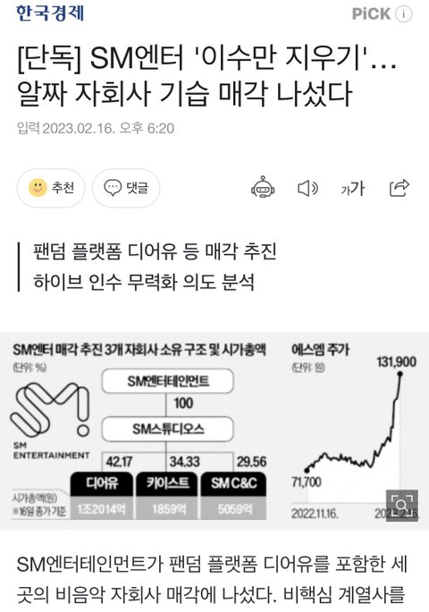 제작사 씨앤씨 배우 소속사 키이스트도 매각한다함