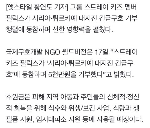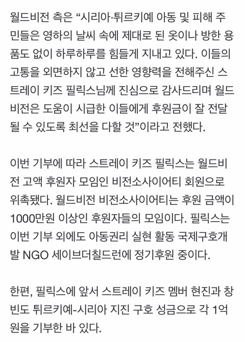 스키즈 현진 창빈 이어 용복이 튀르키예 기부