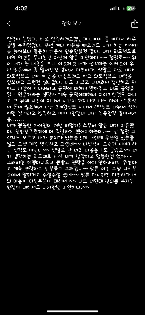 (뭐 대충.. 너가 그렇게 느껴졌다면 미안하고~ 근데 나 내역 보내줄 맘 없고, 돈도 다시 돌려줄 맘 없음ㅋ)