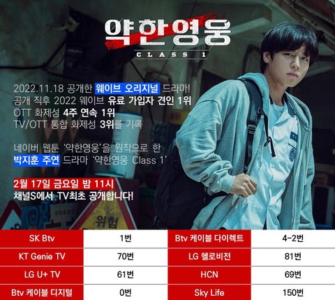 약한영웅 티비방영 한대 오늘부터!!!