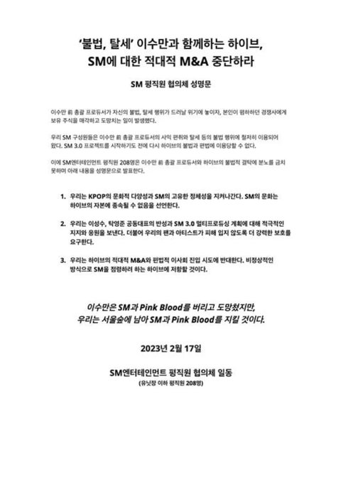 sm내부 문제를 하이브 니네가 해결해라는 어이없는 소리