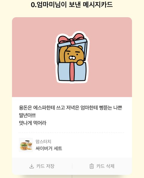 엄마가 보낸 깊티 메시지카드 개웃겨