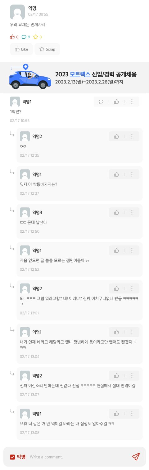 지잡대라서 수준 떨어지는것도 있겠지만 전체적으로 에타를 보면 유명대학 지잡대 가리지않고 이상한 애들이 너무많음.. 사회가 병든거같단 생각을 자주 함