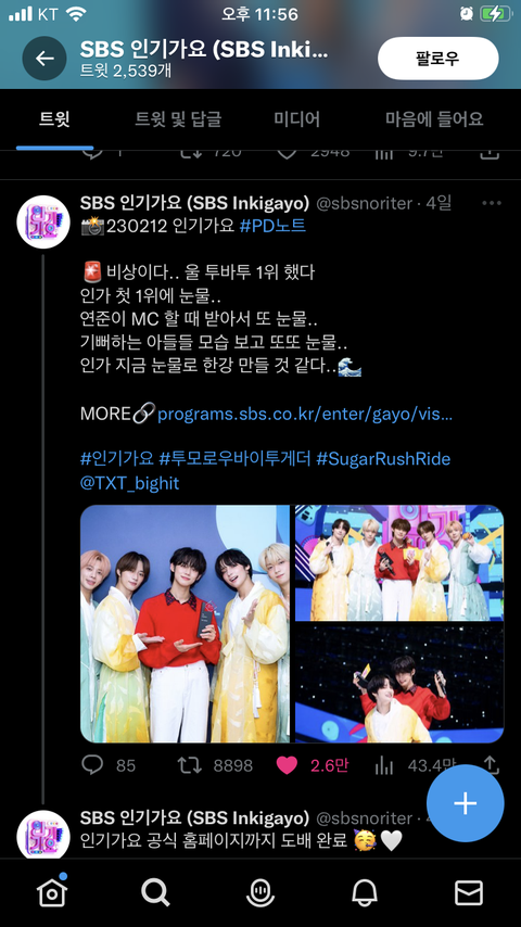 착하자나 인가랑 뮤뱅에서는 투바투가 아들이라고 엄청 아껴주고 부둥부둥해줌 스텝들 PD님들 다 어쩜 이렇게 착하냐고 계속 말할 정도임