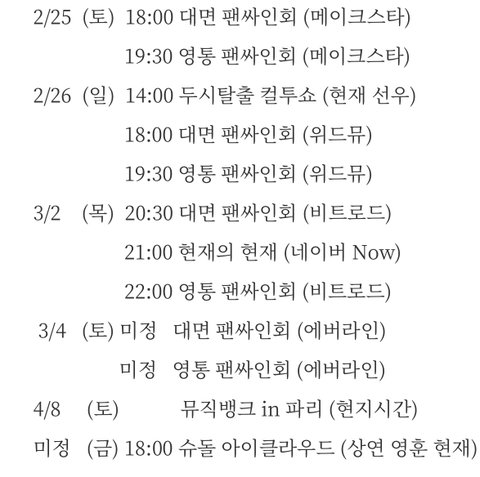 이제 당분간 개인스케쥴 없다는
