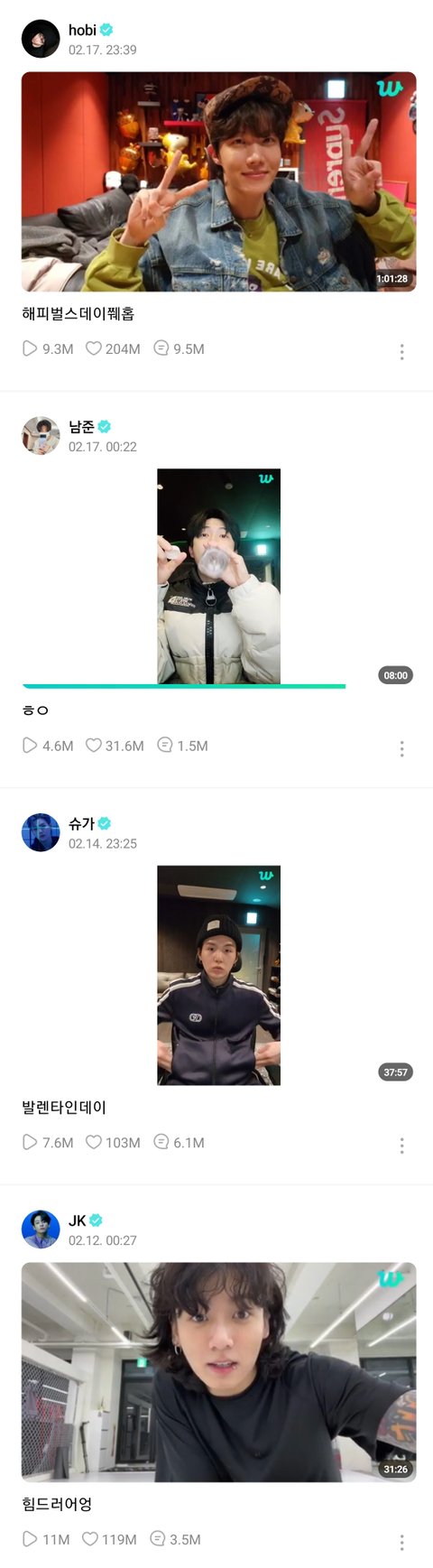 방탄 위버스라이브 조회수? 시청자수 미쳤다