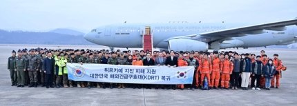 강진 피해를 본 튀르키예에 파견됐던 대한민국 해외긴급구호대(KDRT) 1진이 18일 오전 7시 성남 서울공항으로 귀국했다.