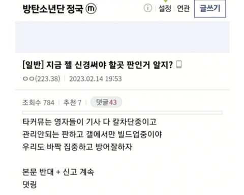 니네가 ㅂ패면서 ㅈㅁ팬들한테 뒤집어 씌움? 판 관리 ㅈㄴ신경써서 하던데? 핸폰 끄면 사라지는 세상 뭐하러 관리하고 정치질임?