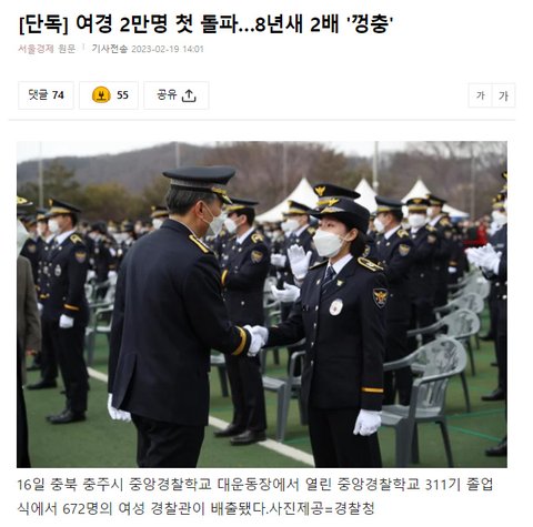 아니 근데 저게 어느 정도는 사실인게 외국인 늘고 남경만 외근 돌리고 여근은 주로 내근하잖아. 그럼 남경이 커버할 수 있는 영역이 자꾸만 줄어든다고 그럼 치안 개판되는거지. 여자들 좋으라고 여경 많이 뽑잖아? 그럼 가장 피해보는것도 여자다.