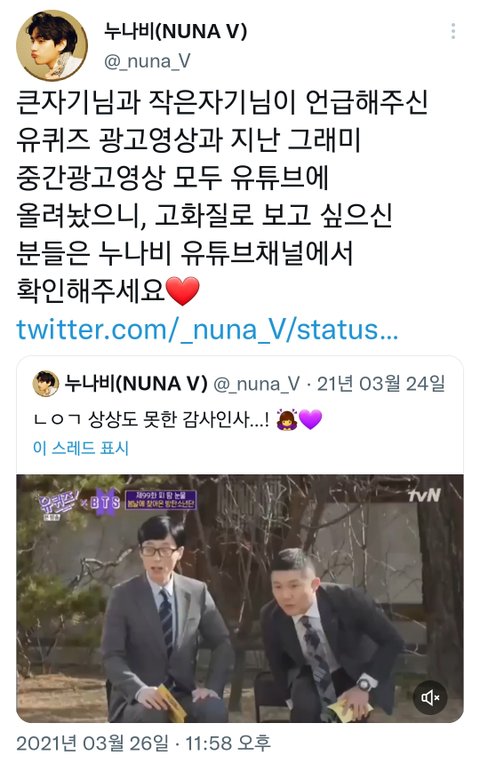 2021년 유퀴즈 출연때도 뷔팬들 티비 광고 사서 유재석이랑 조세호도 언급했었잖아ㅋㅋㅋㅋ