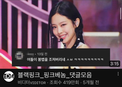 저 채널 영상자체는 ㄱㅊ은데 핑크베놈 영상은 개오글거리더라 여돌이 붐뱁을 조져버리네 ㅇㅈㄹ 진짜 수치스러움