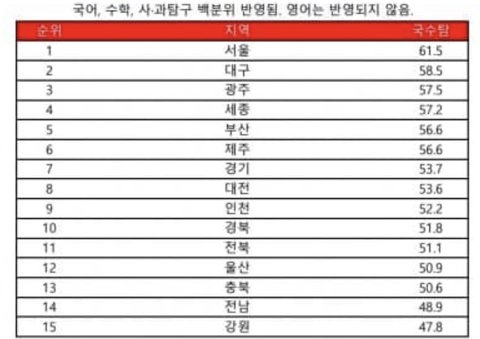 확실히 못사는 지역일수록 공부를 못하네