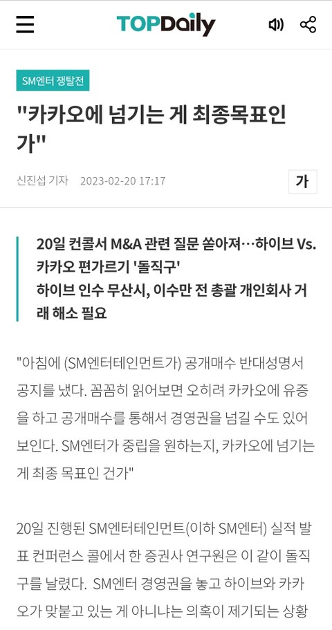 최근 sm임직원쪽에서 위기의식 느끼고 지속적으로 sm내부문제를 하이브까지 같이 저격해서 여론전 펼치는중인데