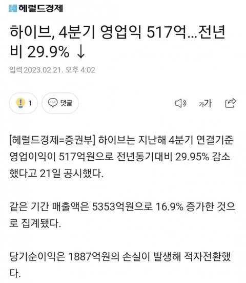 올해 2월 미국 힙합레이블 샀고 슴 산다 난리치던데 올해 1분기 재무제표 볼만하겠다 롸잇나우