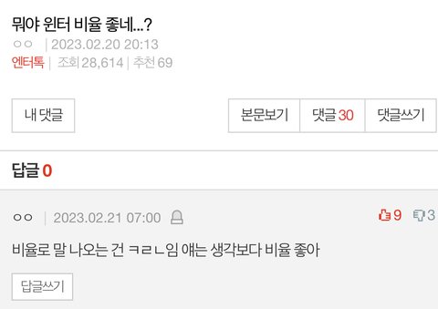 톡선 윈터 비율글 기분 좋게 들어갔다가 기분 잡침