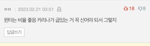 그냥 윈터 칭찬만 하던가 카리나는 왜 후려침? 대댓에 먹금도 없고 맞아 카리나가 구리고 윈터는 여돌 비율의 천상계임 이러고 있음