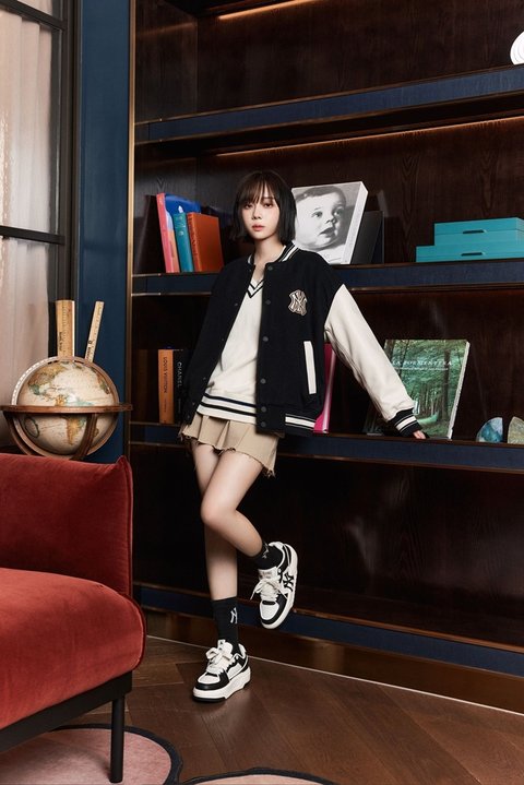 지젤은 청치마랑 분홍색 운동화로 통통 튀는 느낌