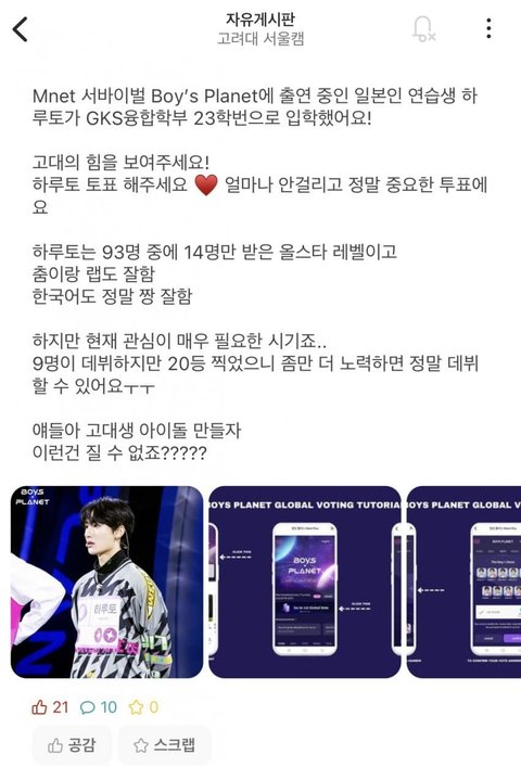 보플 하루토 고대생이라는데??