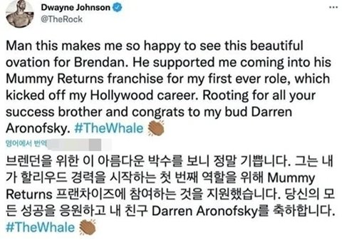 최근 복귀작 <더 웨일> 로 아카데미 남우주연상 노미네이트 됐는데