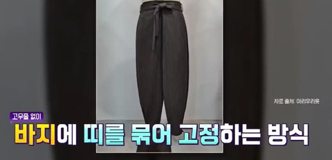 고무줄 없이 허리를 접어서 끈으로 묶는 방식
