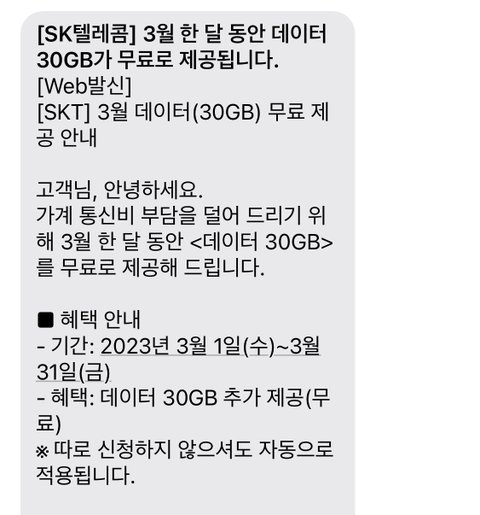 오 skt 30기가 무료머냐