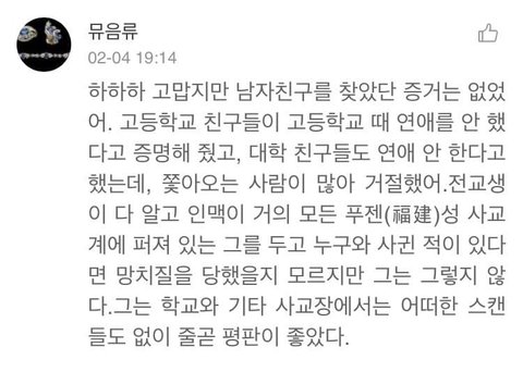 과거썰까지 장하오 그냥 푸젠셀럽이심