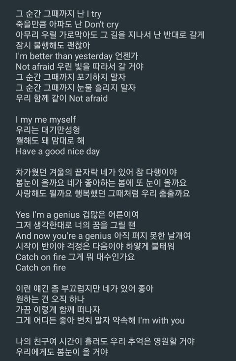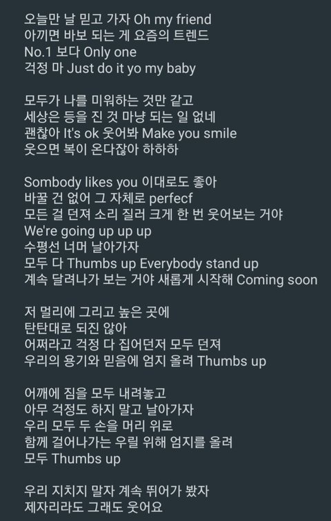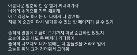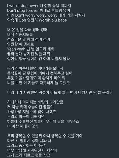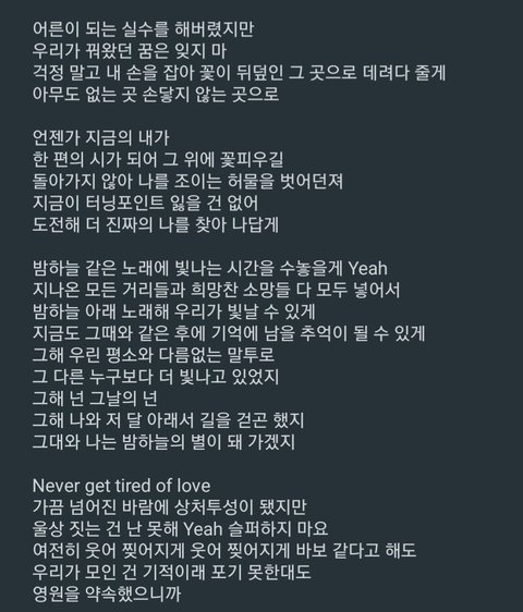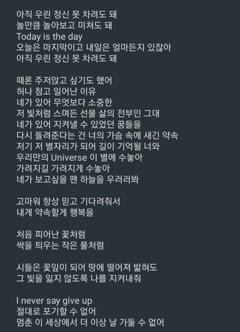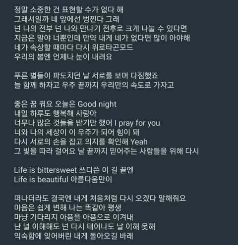 이건 우리 노래는 아닌데 가사가 너무 좋아서… 우리에게 꼭 해주고 싶은 말이야