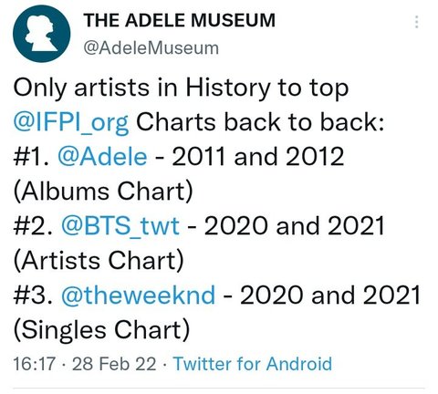 IFPI 연속으로 아티스트 1위한건 방탄