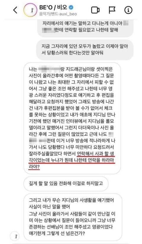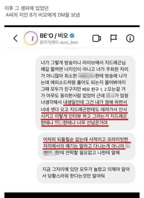비오한테 훈계하는 DM 보낸 지드래곤 친구의 지인