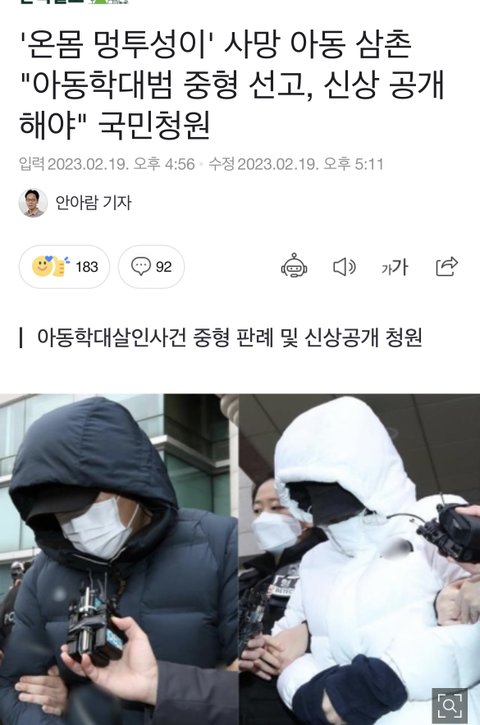 '멍투성이' 사망 아이 삼촌 "아동학대범 신상공개 청원" / JTBC 사건반장