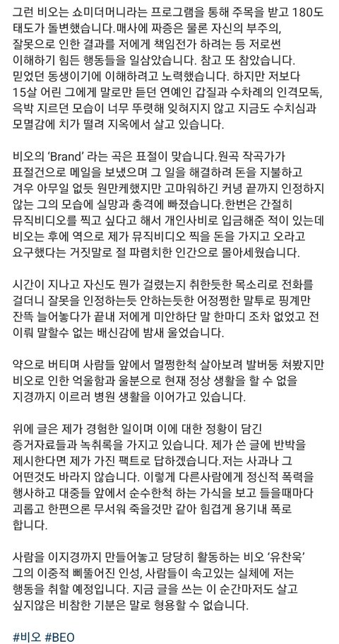 노래내고 몇개월뒤에 작곡 편곡가 크레딧이 바뀐건 빼박이여서... 그리고 폭로자가 산이라고 하는데 내 생각에는 아닌것 같아 폭로자는 정신병원에 들락날락하면서 정신적 피해를 입었다고 하는데 산이는 최근까지 곡을 내면서 정상적으로 잘 활동하고있어. 표절을 걸려서 크레딧을 바꾸는건 god와 mc몽같은 대표적 사례가 있고 지금까지 갑질에 대한 증거는 올라오지 않은 상태야