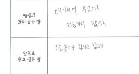 평소에 많이 듣는말과 듣고 싶은 말도 이러함