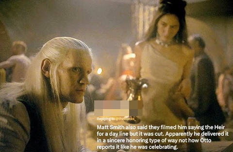 Matt Smith also said they filmed him saying Heir for a day line but it was cut. Apparently he delivered it in a sincere honoring type of way not how Otto reports it like he was celebrating.