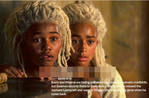 "사실 그 장면은 다에몬이 루크의 죽음에 대한 소식을 듣고 있는 시간이 1분 더 있다."